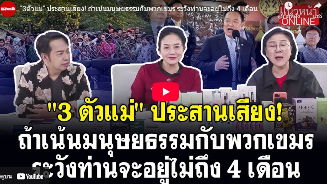 (คลิป) '3ตัวแม่'ประสานเสียง! ถ้าเน้นมนุษยธรรมกับพวกเขมร ระวังท่านจะอยู่ไม่ถึง 4 เดือน