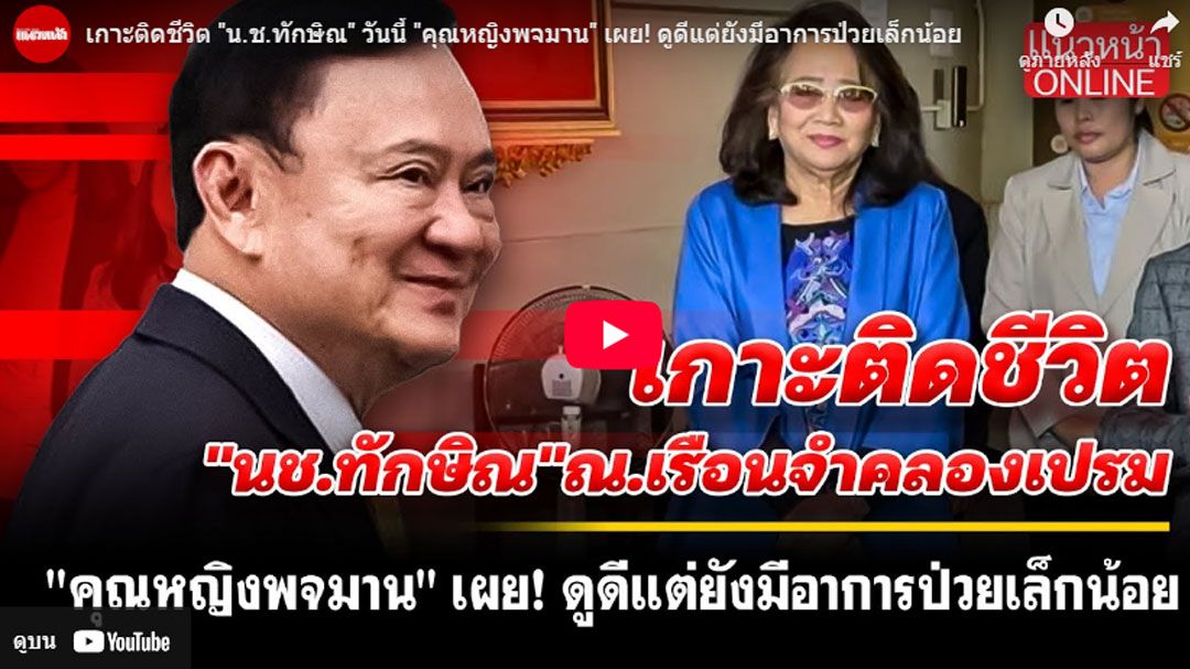 (คลิป) เกาะติดชีวิต น.ช.ทักษิณ วันนี้ คุณหญิงพจมาน เผย! ดูดีแต่ยังมีอาการป่วยเล็กน้อย