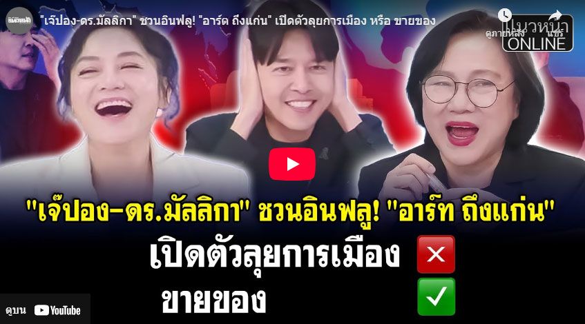 (คลิป) 'เจ๊ปอง-ดร.มัลลิกา'ชวนอินฟลู! 'อาร์ต ถึงแก่น' เปิดตัวลุยการเมือง หรือ ขายของ