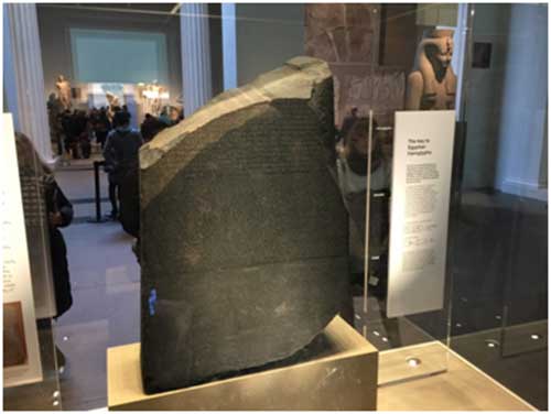 (หินโรเซตตา ปัจจุบันนี้ถูกจัดแสดงที่ BRITISH MUSEUM ที่กรุงลอนดอน)