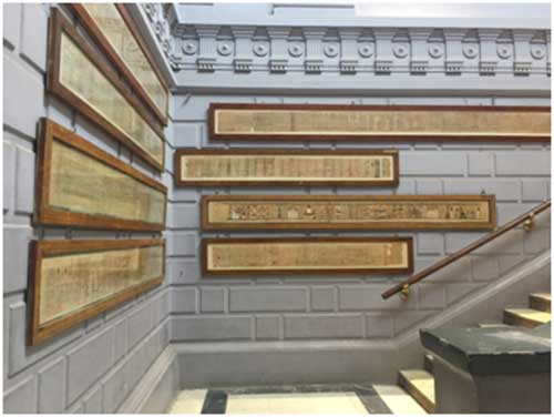 (กระดาษปาปิรัสโบราณอายุหลายพันปี ถูกจัดแสดงอยู่ในพิพิทภัณฑ์แห่งชาติอียิปต์ ในกรุงไคโร)