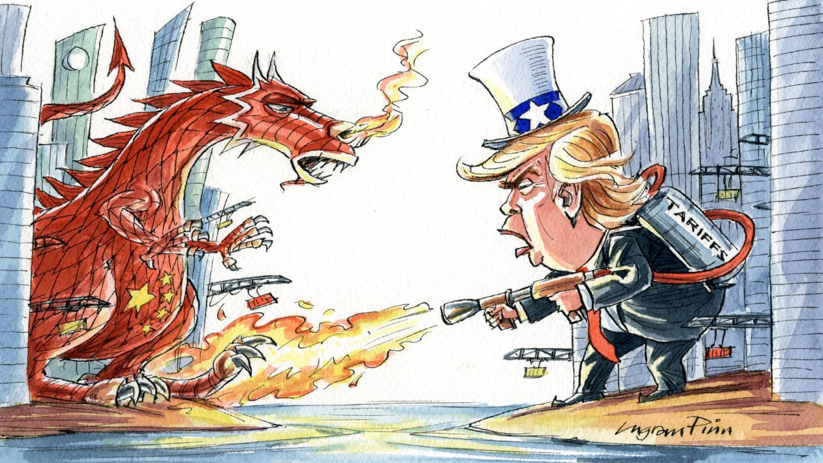 เคยเขียนถึงศึกระหว่างนกอินทรีและพญามังกรหลายรอบแล้ว เพราะคุกกรุ่นมาตลอด แต่พอตาลุงผมเป๋เดินแอ่นเข้ามานั่งกางขาในทำเนียบขาว ไฟสุมขอนกรุ่นๆ ก็โหมเชื้อกลายเป็นไฟลุกท่วมทันที โดยประกาศศึกอย่างเป็นทางการเมื่ออาทิตย์ก่อน หลังคำรามใส่กันไปมาร่วมปี
