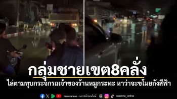 กลุ่มชายเขต8คลั่ง ไล่ตามทุบกระจกรถเจ้าของร้านหมูกระทะ หาว่าจะขโมยถังสีฟ้า
