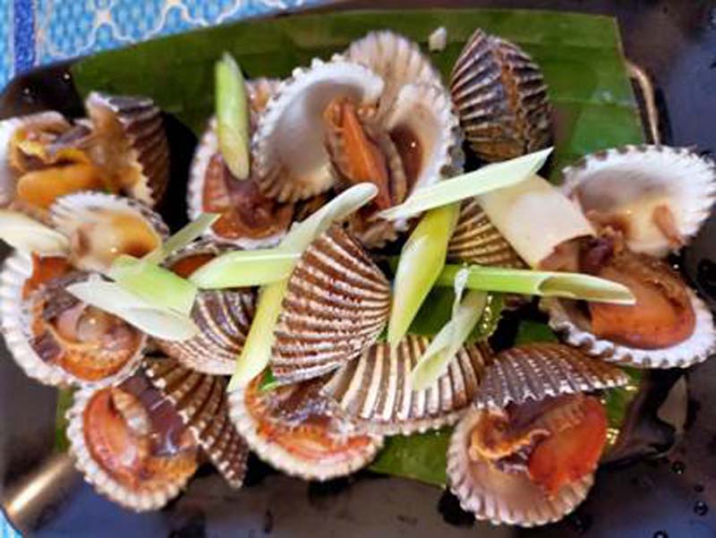 อาหารที่ขึ้นชื่อของชาวกระบี่ เป็นหอยที่กินง่าย เมื่อนึ่งแล้วขาคู่หน้าจะโผล่ออกมา เราสามารถดึงตัวหอยออกมาทั้งยวง จิ้มน้ำจิ้มเคี้ยวสนุก เนื้อกรอบไม่เหนียว
