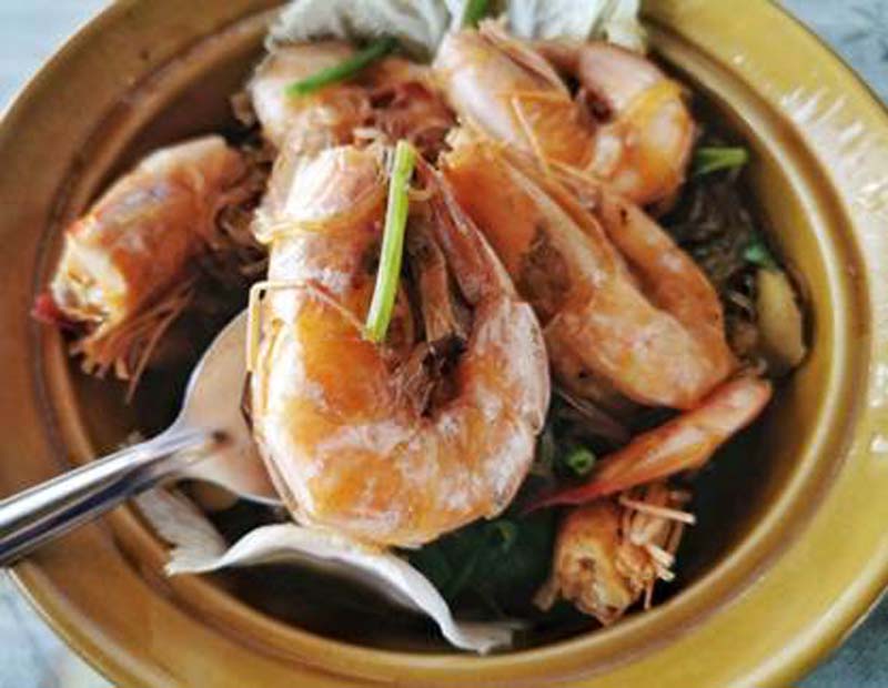 กุ้งแชบ๊วยใหญ่จับจากทะเลตรงหน้าของเรา แค่เอาอบกับเครื่องสมุนไพรสำหรับต้มยำก็แทบจะไม่ต้องกินรายการอื่นๆ เพราะจะอิ่มเสียก่อน