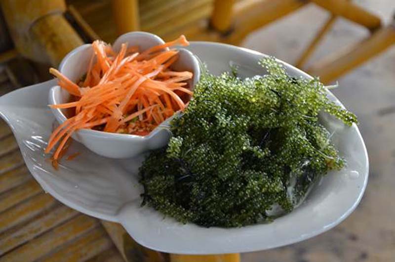 สาหร่ายพวงองุ่นกับน้ำยำส้มตำ