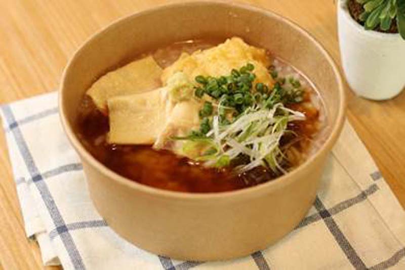 หน้าผสมมีทั้งเต้าหู้ทอด ฟองเต้าหู้ เทมปุระเต้าหู้ ถือว่าเป็นจานมังสวิรัติ
