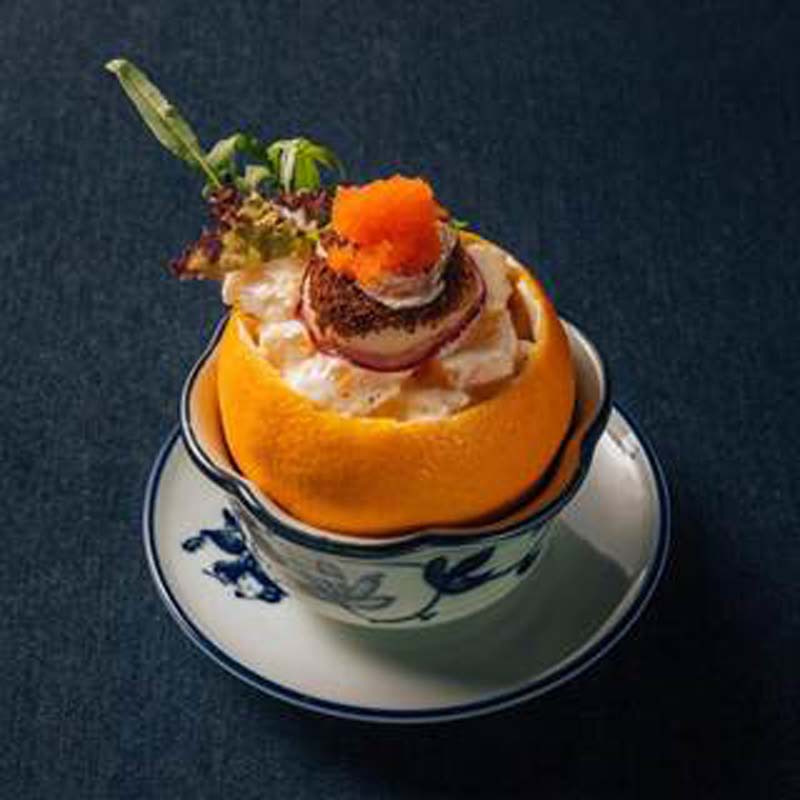 (Scallop in Orange Sauce) สำหรับเรียกความสดชื่น ที่ลูกค้าต่างติดใจกับความสดชื่นจากรายการนี้ เปลือกและผลส้มแมนดารินที่มักใช้ผสมในตำรับยาจีนและต้มแกงหลายชนิดมีรสหวานหอม เสิร์ฟคู่กับหอยเชลล์ตัวใหญ่ที่คลุกเคล้าเครื่องเทศรสเผ็ดเล็กน้อย เมื่อกินคู่กันจะได้รสชาติที่แปลกใหม่แต่กลมกล่อมให้ใจละลาย