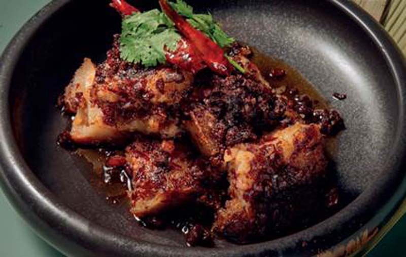 เป็นอีกรายการที่ทางร้านภูมิใจนำเสนอ ใช้เนื้อปลาเก๋าชิ้นโตนึ่งซีอิ๊ว เชฟใช้ความพิถีพิถันตั้งแต่การคัดสรรเนื้อปลาเก๋าชิ้นโตที่ดูสดแน่น เลือกเฉพาะส่วนที่ดีที่สุดของปลาเกรดพรีเมียม จึงได้รสหวานจากความสดของเนื้อปลาเสมือนเพิ่งขึ้นจากทะเลหมาดๆ เข้ากันได้ดีกับเส้นก๋วยเตี๋ยวทอดกรอบที่รองก้นจาน บังเกิดความมหัศจรรย์ของรสชาติสุดกลมกล่อมผสานความหอมจากซีอิ๊วเกรดหนึ่งผสมสมุนไพรอย่างลงตัว เป็นที่ถูกอกถูกใจคนชอบปลา วางชิ้นปลา ให้สัมผัสที่ลงตัวของปลาเก๋าจากทะเลไทยมาจี่ให้สุก โรยหน้าด้วยขิงซอยละเอียด แซมผักร็อกเก็ต