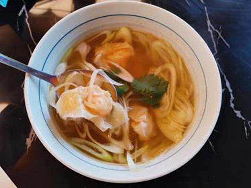 เกี๊ยวกุ้งตัวโต บรรจุไส้กุ้งแน่น ได้น้ำซุปใสให้ซดร้อนๆ ร้านในฮ่องกงลองมาชิม คงมองค้อนเชฟหลายวง ค่าที่ตุ๋นน้ำซุปได้ระดับปรมาจารย์