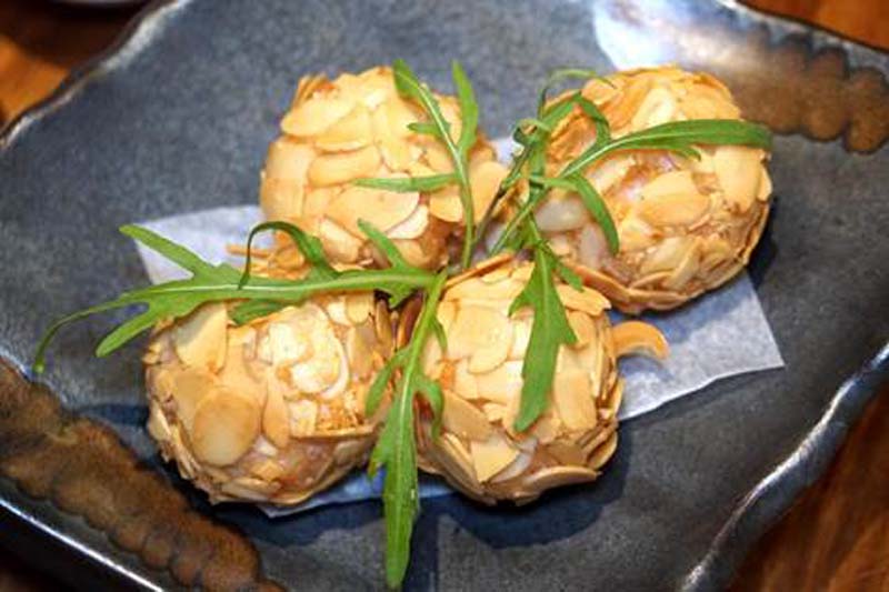 จากระยะเวลา 99 ปีที่สหราชอาณาจักรได้สิทธิในการเช่าเกาะฮ่องกงเป็นที่มาของชื่อเมนูนี้วิธีการทำของเชฟ นำกุ้งสับมาปั้นเป็นลูกชิ้นก้อนโตแล้วเคล้ากับแผ่นถั่วอัลมอนด์ซอยบาง แล้วนำลงทอดจนสุกพอดีโดยไม่อมน้ำมัน เมื่อกัดคำแรกจะได้ความหวานธรรมชาติตัดกันกับรสชาติซอส 2 อย่างที่เสิร์ฟมาเคียงข้าง เนื้อสัมผัสที่ค่อนข้างกรอบเด้งจากเนื้อกุ้งตัดผสานกับความกรอบจากถั่วอัลมอนด์ที่เคลือบมา สร้างสรรได้อร่อยสมกับเป็นเมนูแนะนำ