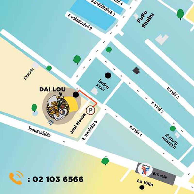 (มีที่จอดรถใกล้เคียงบริเวณร้านในซอยอารีย์ 1 และลานจอดรถสำรองในซอยอารีย์สัมพันธ์ 2 พร้อมบริการรถรับ-ส่งฟรี จากลานจอด และในย่านอารีย์)