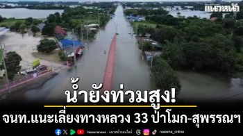 น้ำยังท่วมสูง! จนท.แนะเลี่ยงทางหลวง 33 ป่าโมก-สุพรรณฯ