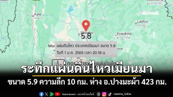 ระทึกแผ่นดินไหวเมียนมา ขนาด 5.9 ความลึก 10 กม. ห่าง อ.ปางมะผ้า 423 กม.