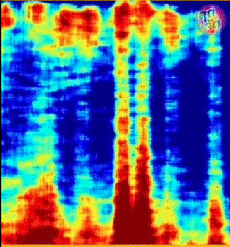 (ภาพที่อ้างว่า มาจากการสะแกนของเรดาร์ เห็นเหมือนเสาเข็ม 8 ต้นใต้พีระมิด-ภาพจากวิดีโอ)