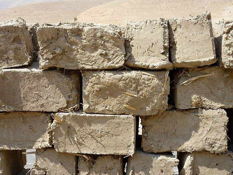 (ดินดิบ ซึ่งอาจจะมีฝางหญ้าผสมเข้าไปด้วยเพื่อให้เหนียวแน่นขึ้น-ภาพจากวิกิพีเดีย)