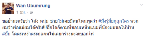ล่าสุด ปรากฎว่ามีผู้ใช้เฟซบุ๊กรายหนึ่งอ้างว่าเป็นเพื่อนของ น้อง บ. ได้ออกมาแฉพฤติกรรมของเพื่อนสาวที่ถึงแม้จะรับรู้สถานะครอบครัวของฝ่ายชายแต่ก็ยังไม่ยอมลดละความพยายามที่จะเข้าไปเป็นส่วนหนึ่งในชีวิตของอีกฝ่าย แม้เพื่อนๆ จะเคยเข้าไปเตือนแต่กลับถูกน้อง บ. ลบเพื่อนเฟซบุ๊กทิ้ง