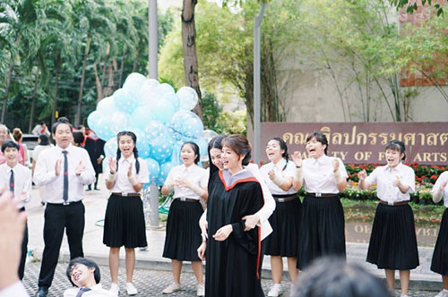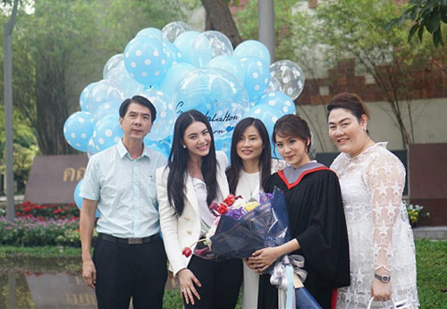 ล่าสุด ในวันนี้สาวใบเฟิร์นได้สวมชุดครุยซ้อมรับปริญญาเป็นวันแรก โดยมีครอบครัว เพื่อนๆ และดารารุ่นพี่อย่าง "ใหม่ ดาวิกา" หอบของขวัญ ดอกไม้มาร่วมแสดงความยินดี พร้อมกับโพสต์คลิปจากกลางวงบุมสุดน่ารักมาให้ชมอีกด้วย