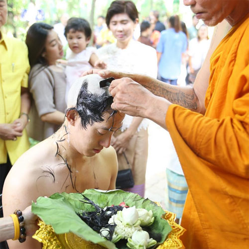 โดยการบวชในครั้งนี้ เนื่องจากเจ้าตัวมีความคิดที่อุปสมบทมานานแล้ว บวกกับช่วงนี้เป็นจังหวะที่ทุกอย่างลงตัว พอได้รับฤกษ์มาจาก หลวงพี่อุเทน ก็ได้ตัดสินใจบวชทันทีเพื่อทดแทนคุณบุพการี ซึ่งมีเหล่าญาติ เพื่อนสนิทรวมไปถึงภรรยาสาวสวย "โบ ธัญญะสุภางค์" ร่วมงานบุญในครั้งนี้ด้วย