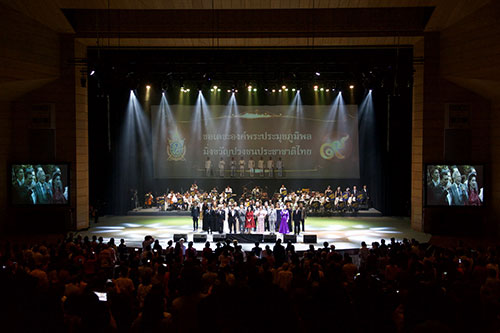 ก่อนจะปิดท้ายที่ “วงเครื่องประโคมแตรสังข์” ซึ่งประกอบด้วย สังข์, แตรงอน, แตรฝรั่ง, ฆ้องชัย และ มโหระทึก ร่วมบรรเลงกับวงดนตรีกาญจนะผลิน ในเพลง "สดุดีมหาราชา" ศิลปินทุกท่านขึ้นมาร้องเพลงนี้ร่วมกัน ต้องบอกว่าคอนเสิร์ต “93 ปี ชาลี อินทรวิจิตร เพลงหนังคู่แผ่นดิน” สร้างเสียงหัวเราะ ความสุข และรอยยิ้ม ให้กับทุกศิลปินรับเชิญและผู้ชมได้ตลอดทั้งงานเลยทีเดียว