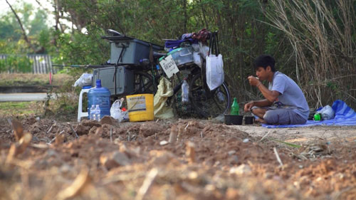 แต่ในอีกมุมของเด็กหนุ่มคนนี้เขามีทั้งทักษะวิชาชีวิต เป็นทั้งนักคิดนักประดิษฐ์ นักวิทยาศาสตร์ ที่กวาดเอาสิ่งรอบตัวหยิบจับมาทำ จากความอัตคัดและข้นแค้น กระท่อมเล็กๆ กลางสวนยางพาราหลังที่เขาอาศัยอยู่เลยกลายเป็นห้องทดลอง ห้องแล็บดีๆ ที่นักวิทยาศาสตร์พึงมีห้องหนึ่งซึ่งถ้ามองภายนอกก็เป็นเพียงเพิงพักหลังคาสังกะสีโกโรโกโสหลังหนึ่ง เหมือนไม่มีอะไร แต่ทว่าที่นี่กลับซุกซ่อนอะไรบางอย่างไว้มากมายที่สามารถนำมาหยิบใช้ได้ตลอดเวลาตามที่เขาต้องการ ถ้าจะพูดว่าเขาคือ ดอกเตอร์ขี้ยาง ที่สร้างอาณาจักรอยู่กลางสวนยางพาราเพียงลำพังก็คงไม่ผิด และอาจจะเป็นดอกเตอร์ขี้ยางคนแรกของโลกก็ว่าได้ที่พาตัวเองทะยานออกสู่โลกกว้างด้วยจักรยานเก่าๆ คันนี้ เพื่อไปเรียนรู้วิชาที่ในสถานศึกษาหาไม่มีในชีวิตจริง
