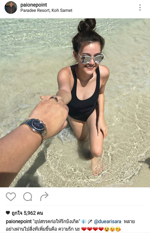 ส่วนไผ่ก็ได้แชะภาพจับมือสาวดิวและโพสต์ข้อความหวานๆ ว่า "อุปสรรคก่อให้รักบังเกิด หลายอย่างผ่านไปสิ่งทีเพิ่มขึ้นคือ ความรัก เรียกว่าความรักของทั้งคู่ดูจะหวานแบบไม่แคร์กระแสจริงๆ