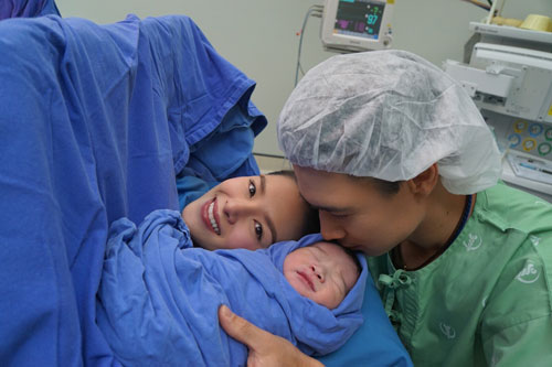 “รู้สึกตื่นเต้นมากกับการได้เป็นคุณแม่หลังจากอุ้มท้องลูกชายมากว่า 41 สัปดาห์ ตอนแรกตั้งใจจะคลอดลูกด้วยตัวเองแต่ก็ต้องตัดสินใจผ่าคลอดเนื่องจาก ปากมดลูกไม่เปิด และน้องไม่กลับหัวค่ะ คุณหมอเลยแนะนำว่าถ้าไม่ผ่าอาจจะเป็นอันตรายต่อสุขภาพเด็ก แต่พอผ่ามาแล้วถึงรู้สาเหตุที่น้องไม่กลับหัว เพราะมีรกพันคอน้องอยู่ 2 รอบ ก็รู้สึกตกใจแต่ดีใจที่น้องปลอดภัยและแข็งแรงดีค่ะ ซึ่งพอเราพอได้เห็นหน้าลูกครั้งแรกถึงกับกลั้นน้ำตาไว้ไม่อยู่ ดีใจมาก หมอบอกว่าน้ำหนักกำลังดี 3,270 กรัม ความสูง 51 เซนติเมตร ค่ะ”