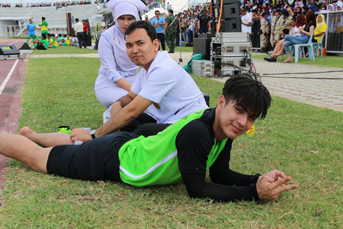 อุ่นเครื่องความสนุกในวันนั้นด้วยรอยยิ้มและเสียงใสๆ จาก 2 สาว “ฮาน่า–เอี๊ยม” จากนั้นเสียงกรี้ดยังคงกระหึ่มอย่างต่อเนื่องกับการเปิดตัวทีมนักฟุตบอล การแข่งขันครั้งนี้เหล่านักแสดงต้องปะทะกับทีมวีไอพี กับทีมเยาวชน จ.ปัตตานี อาจดูเป็นความกดดันแบบเบาๆ แต่ก็ไม่ได้แปลว่าจะไม่สู้ งานนี้เพียงเริ่มต้นเกมส์ได้ไม่นาน หนุ่มเขตก็สามารถทำประตูให้ทีมมีคะแนนนำไปก่อน โดยตลอดการแข่งขันทั้งสองทีมสู้สุดใจ เพราะผลการแข่งขันไม่สำคัญเท่าการได้มาร่วมเล่นกีฬาและได้มอบความสุขให้กับทุกคนที่นี่ โดยหนุ่มเขต