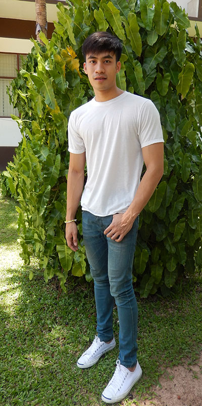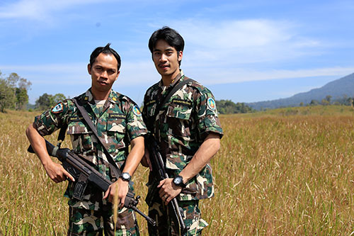 คือมีพี่ที่รู้จักเขาส่งรูปผมไปให้ผู้กำกับครับ จากนั้นพี่ผู้กำกับก็เรียกผมไปคุย พี่เขาก็ให้ผมถอดเสื้อ พอเห็นกล้ามก็บอก โอเคได้ (หัวเราะ) คือด้วยความที่ต้องถ่ายในป่า เลยต้องหาพระเอกหุ่นล่ำๆ มั้งครับ พี่เขาเลยเลือกผม ถือเป็นโอกาสที่ดีของชีวิตที่ได้มาทำงานในด้านนี้ครับ”