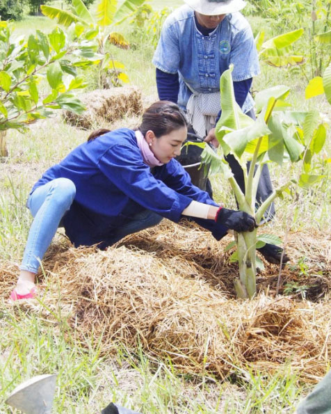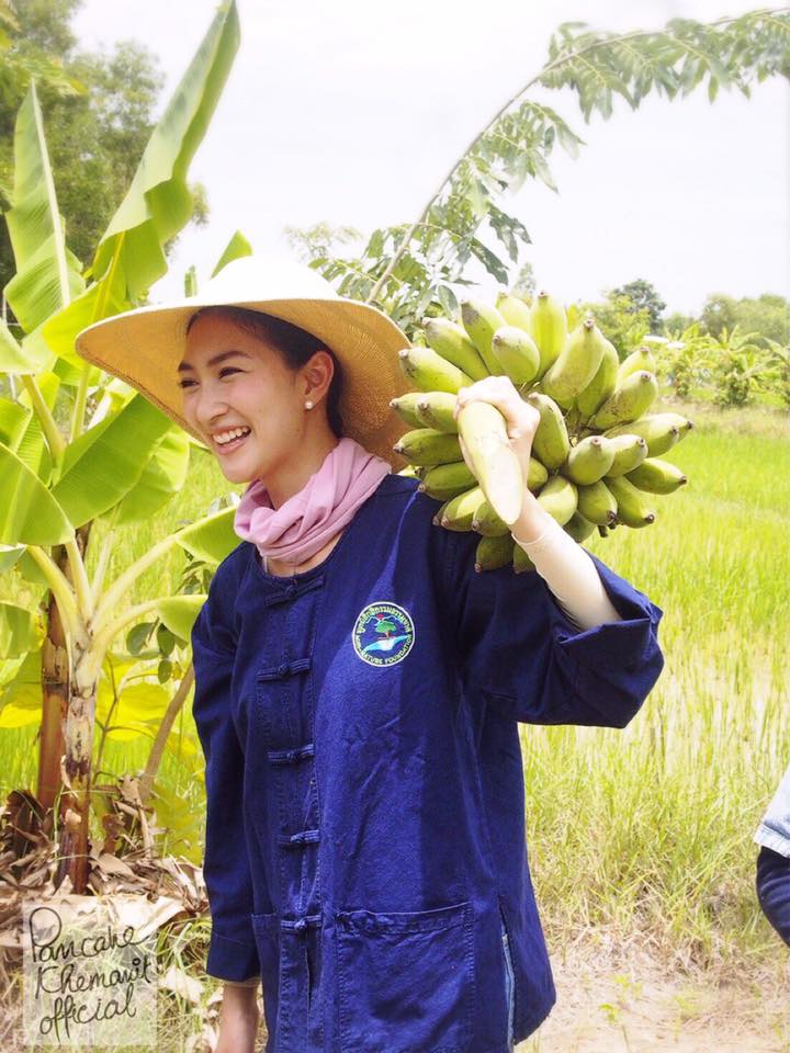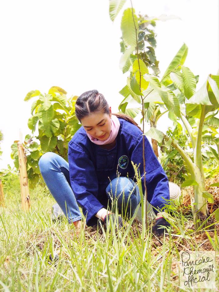 โดยสาวแพนเค้กได้โพสต์ภาพขณะกำลังลงมือปลูกต้นกล้วยลงบนอินสตาแกรม พร้อมข้อความว่า "ปลูกต้นกล้วยเพิ่มที่ ที่นาของแพนค่ะ พืชระยะสั้น รายล้อมไปด้วยต้นไม้ระยะยาว ต้นมะฮอกะนี ต้นยางนา และ สะเดาค่ะ ทำ #แห้งชามน้ำชาม ใส่ปุ๋ยอินทรีย์ และรดน้ำ พร้อมห่มฟางเพื่อความชุ่มชื้น เก็บสารอาหารไว้ให้กับต้นไม้ค่ะ #ศาสตร์พระราชา #ป่าสามอย่างให้ประโยชน์สี่อย่าง #โคกหนองนาโมเดล"