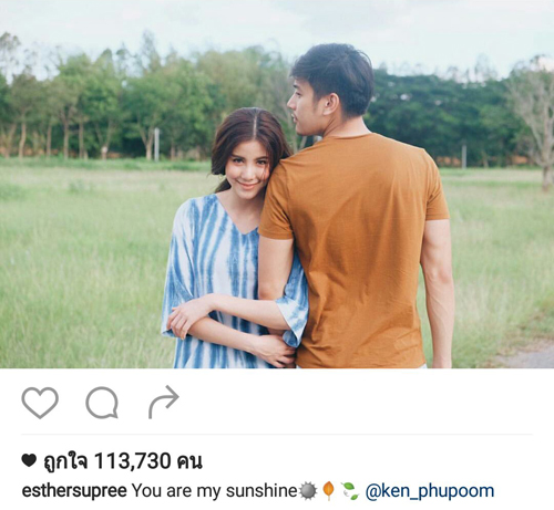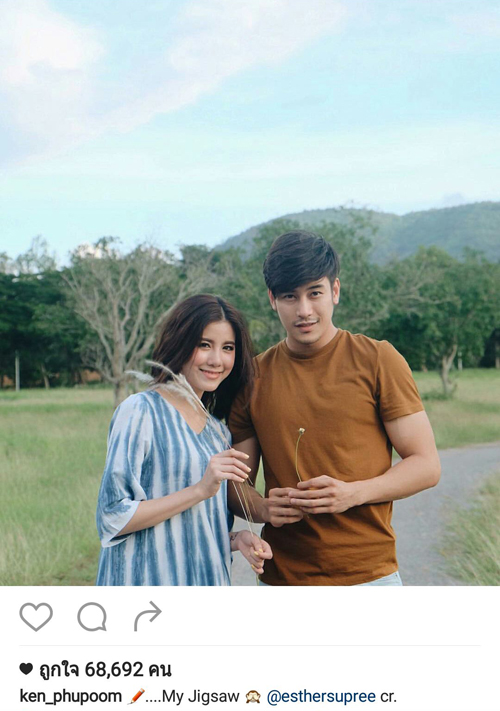 ล่าสุด ทั้งคุู่ก็ได้โพสต์ภาพน่ารักท่ามกลางทุ่งหญ้า แถมคราวนี้ยังมีแคปชั่นสุดหวาน โดยหนุ่มเคน ลงแคปชั่นว่า "My Jigsaw" ด้านสาวเอสเธอร์ ก็หวานไม่แพ้กัน ด้วยแคปชั่นว่า "You are my sunshine" เรียกว่าทำเอาคนโสดแทบคลั่งเลยทีเดียว