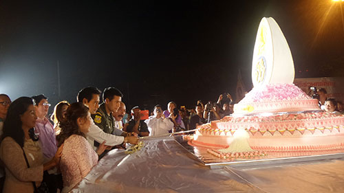 สำหรับพิธีการต่างๆ เริ่มต้นขึ้นเวลาประมาณ18.00 น. ด้วยการรำถวายพระพร และตามด้วยการแสดงพื้นบ้านแบบไทยๆ คือ “กระตั้วแทงเสือ” หลังจากนั้นเข้าสู่พิธีบวงสรวงโดยมี คุณรัตนา สมสกุลรุ่งเรือง ประธานมูลนิธิร่วมกตัญญูซึ่งเป็นเจ้าภาพบายศรีแสนสวยงาม พร้อมด้วย คุณทวีชัย จริยะเอี่ยมอุดมแห่งท๊อปไลน์ไดมอนด์ รองประธานมูลนิธิ คุณพรพิมล มั่นฤทัย ค่ายโคลีเซี่ยมอินเตอร์กรุ๊ป ผู้ปลุกปั้นพระเอกนักบุญเป็นคนแรก พร้อมทั้งผู้ใหญ่อีกหลายท่านมาร่วมในพิธีด้วย โดยพระเอกผู้กำกับในฐานะเจ้าภาพใหญ่ของงานนี้เป็นคนจุดธูปเทียนบูชาพิธีบวงสรวง พอเสร็จพิธีบวงสรวงจึงได้ร่วมกันถวายเค้กให้กับพระองค์ท่าน และร่วมกันตัดเค้กวันเกิดที่ใหญ่ที่สุดในประเทศไทยโดยมีประชาชนที่มาร่วมพิธีสำคัญนี้รอรับการแจกเค้กนับพันคน