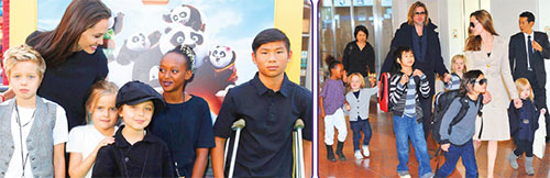 เมื่อตอนที่โจลียื่นเรื่องขอฟ้องหย่าจากพิตต์เมื่อวันที่ 19 กันยายนที่ผ่านมา เธอได้ร้องขอสิทธิ์ที่จะเลี้ยงดูบุตรร่วมกับอดีตสามีตามกฎหมาย แต่ขอให้สิทธิ์หลักในการดูแลลูกๆ ด้านกายภาพนั้นเป็นของเธอ ซึ่งนั่นหมายความว่าเด็กๆ ต้องอยู่กับเธอ และพิตต์สามารถมาเยี่ยมลูกๆ ได้ ซึ่งประกอบไปด้วย แมดด็อกซ์ วัย 15 ปี, แพกซ์ วัย 12 ปี, ซาฮารา วัย 11 ปี, ชิโลห์ วัย 10 ปี และฝาแฝด น็อกซ์ กับ วิเวียน วัย 8 ปี ในทางกลับกัน แหล่งข่าวจากทางพิตต์แจ้งว่า พระเอกหนุ่มกำลังยื่นคำร้องขอมีสิทธิ์ร่วมในการดูแลบุตรด้านกายภาพด้วย ซึ่งเรื่องนี้ยังเป็นที่กังขาเพราะเพิ่งมีข่าวว่าพิตต์ทะเลาะกับลูกชายคนโตอย่างรุนแรงก่อนที่เขาจะเลิกกับโจลี