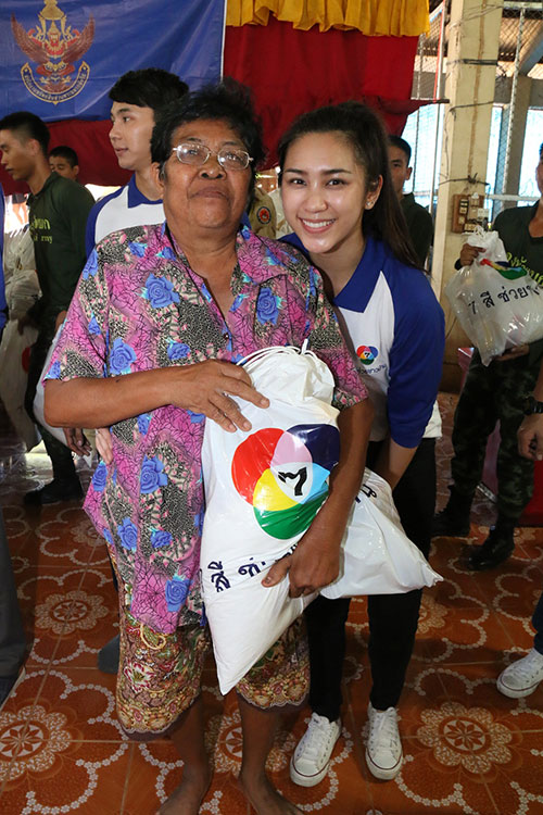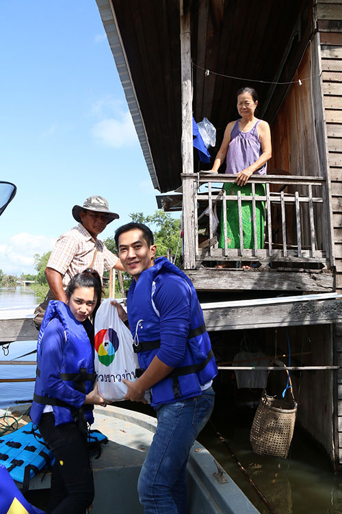“หลังจากพวกเราได้ร่วมมอบถุงยังชีพและเห็นภาพความเดือดร้อนของผู้ประสบภัย หลังจากมีโอกาสลงเรือออกไปให้กำลังใจแก่พี่ๆ น้องๆ พวกเราขอเป็นตัวแทนชาวช่อง 7 สี ร่วมส่งกำลังใจให้กับทุกๆ คนที่ประสบความเดือดร้อน ให้สามารถใช้ชีวิตก้าวผ่านช่วงเหตุน้ำท่วมจากฤดูมรสุมไปได้อย่างมีรอยยิ้ม และหวังว่าความห่วงใยจากพวกเราจะช่วยคลายทุกข์ให้กับพี่ๆ น้องๆ ออกไปได้บ้าง”