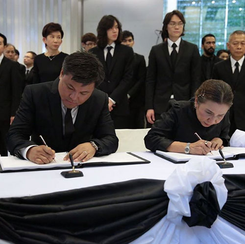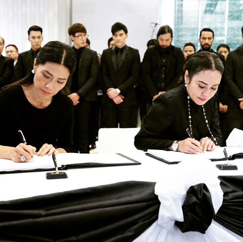 โดยเหล่าศิลปินได้ร่วมกันกล่าวคำปฏิญาณหน้าพระบรมฉายาลักษณ์ และยืนสงบนิ่งเป็นเวลา 9 นาที ก่อนที่จะทยอยลงนามถวายความอาลัย