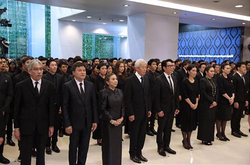 20 ต.ค.59 ผู้สื่อข่าวรายงานว่า วานนี้ (19 ต.ค.) ที่อาคาร จีเอ็มเอ็ม แกรมมี่ เพลส คณะผู้บริหาร บริษัท จีเอ็มเอ็ม แกรมมี่ จำกัด (มหาชน) พร้อมด้วยพนักงานและศิลปิน-นักแสดง อาทิ เบิร์ด ธงไชย, บี้ สุกฤษฎิ์, คริสติน่า, ตู่ นันทิดา, ใหม่ เจริญปุระ, กัน เดอะสตาร์ ฯลฯ ได้ร่วมพิธีถวายสักการะและแสดงความอาลัย พระบาทสมเด็จพระปรมินทรมหาภูมิพลอดุลยเดช