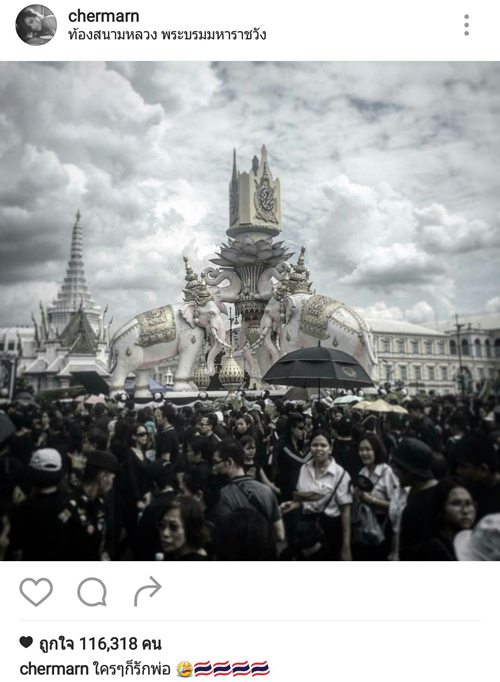 23 ต.ค.59 นางเอกสาว "พลอย เฌอมาลย์" เป็นอีกหนึ่งคนบันเทิงที่ได้มีโอกาสไปร่วมร้องเพลงสรรเสริญพระบารมี ถวายแด่ พระบาทสมเด็จพระปรมินทรมหาภูมิพลอดุลยเดช ณ ท้องสนามหลวง (22 ต.ค.)