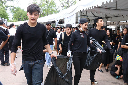 ในภาวะที่คนทั้งประเทศไทยสูญเสียพ่อหลวงอันที่เป็นรัก ก็มีสิ่งหนึ่งที่เกิดขึ้นท่ามกลางความโศกเศร้า คือความร่วมมือร่วมใจกันของประชาชนชาวไทย ตลอดระยะเวลาที่ผ่านมาเราจะเห็นจิตอาสามากมายออกมาทำความดี แบ่งปันซึ่งกันและกันผ่านกิจกรรมต่างๆ นักแสดงจากช่อง 7 สี ก็ขอเป็นส่วนหนึ่งในการทำความดีรวมตัวกันเก็บขยะบริเวณสนามหลวง เพื่อถวายเป็นพระราชกุศลแด่พระบาทสมเด็จพระปรมินทรมหาภูมิพลอดุลยเดช โดยมีนักแสดง อาทิ อ๋อม-อรรคพันธ์, บิ๊กเอ็ม-กฤตฤทธิ์, หลุยส์-เฮสดาร์ซัน, โหน-ธนากร, โดนัท-ภัทรพลฒ์, วิน-วาทิต, กรีน-อัษฎาพร, โบว์-เมลดา, มิลลี่-คามิล่า, ฮาน่า ลีวิส, โซฟี่-อัปสรสิริ, ตูน-พิมพ์ปวีณ์, แจมมี่-ปาณิชดา, ไอซ์-อธิชนันท์, สา-อนิสา, พลอย-รัญดภา, แก้วใส-คริสตัล, แก้ม-กวินตา, นินิว-กัญญารัตน์ เป็นต้น รวมไปถึงผู้ประกาศข่าว ที่สลับเปลี่ยนหมุนเวียนกันไปในแต่ละวัน ณ บริเวณท้องสนามหลวง