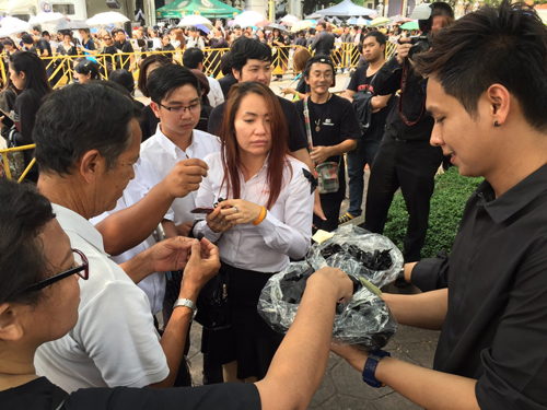 ในส่วนของพวกเราคนลูกทุ่งก็ขอสานต่อแนวคำสอนของพ่อหลวงในการทำดี ทำเพื่อผู้อื่นโดยการนำเข็มกลัดริบบิ้นสีดำ ที่สามารถใช้ในการไว้ทุกข์แม้ว่าใครหลายคนจะยังไม่มีเสื้อสีดำก็ตาม นอกจากนี้ก็มีแจกน้ำ ขนม ช่วยกันเก็บขยะ อะไรที่พวกเราคนลูกทุ่งทำเพื่อคนไทยได้พวกเราก็ยินดีทำค่ะ