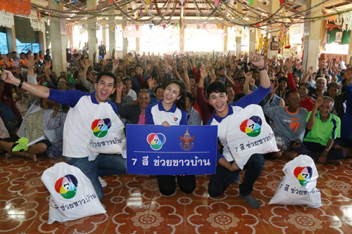 สถานีโทรทัศน์สีกองทัพบกช่อง 7 ร่วมกับสำนักงานทรัพย์สินส่วนพระมหากษัตริย์ ลงพื้นที่นำถุงยังชีพไปช่วยเหลือผู้ประสบอุทกภัยจำนวน 1,000 ชุด ในโครงการ 7 สีช่วยชาวบ้าน โดยมี สมหมาย ศิลปีโยดมผู้ช่วยผู้จัดการฝ่ายข่าว สถานีโทรทัศน์สีกองทัพบกช่อง 7 พร้อมด้วยนักแสดง “พลอย-รัญดภา มันตะลัมพะ” จากละคร บัลลังก์หงส์, นัท-อติรุจ สิงห์อำพล จากละคร เพชรตัดเพชร และผู้ประกาศข่าว “นัท-ณัฐชนน อาภาศรีรัตน์” เพื่อเยียวยาและสร้างขวัญกำลังใจให้แก่ผู้ประสบภัยอย่างใกล้ชิด อ.โพธิ์ประทับช้าง จ.พิจิตร และ อ.พรหมพิราม จ.พิษณุโลก