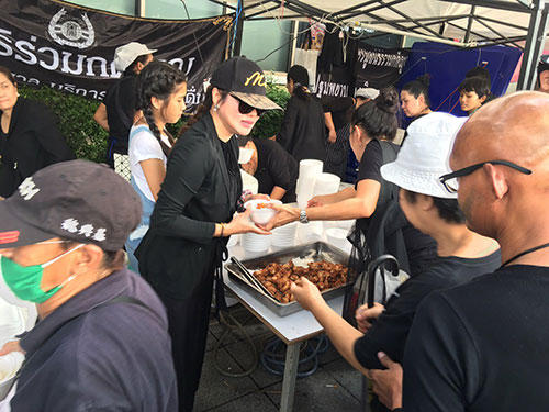 'ใหม่ เจริญปุระ'ร่วมแจกน้ำ-อาหาร ให้ปชช.ที่มาร่วมแสดงความอาลัย