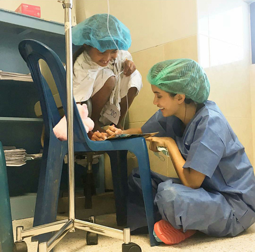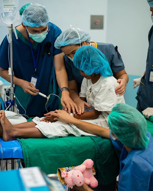 โดยสาวปู เผยว่า เด็กๆ ก่อนเข้าผ่าตัดจะมีความเครียด ความล้าจากการอดน้ำและอาหาร ของเล่นเล็กๆ น้อยๆ สมุดระบายสี และกำลังใจจากพวกเราจะช่วยน้องๆ ได้มาก