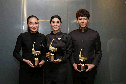 เพ็ญจันทร์ : “รู้สึกเป็นเกียรติมากๆ จริงๆ แล้วไม่คิดว่าตัวเองจะได้มีโอกาสมารับรางวัลอันทรงเกียรติขนาดนี้ เราแค่เพียงทำทุกสิ่งในชีวิตให้ดีที่สุดเท่าที่จะทำได้แค่นั้น อย่างเช่นเขียนบท-กำกับการแสดง ละครเทิดพระเกียรติ ฝายน้ำใจ เราก็พยายามทำให้ดีเพื่อถวายพระองค์ท่าน ต้องขอขอบคุณคณะกรรมการทุกท่านที่เล็งเห็นความตั้งใจจริงของเราค่ะ”