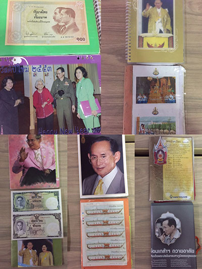 ที่บ้านจะมีรูปในหลวงรัชกาลที่ 9 เยอะมากอย่างที่สมุดจดคิวก็จะมีรูปพระบาทสมเด็จพระเจ้าอยู่หัวรัชกาลที่ 9 ติดอยู่ วันนี้หยิบมาให้ชมด้วย มีหลายเล่มเริ่มตั้งแต่ปี 2551 ถึงปี 2559 แล้วเล่มสุดท้ายคือปี 2560 คือจะตัดรูปพระบาทสมเด็จพระเจ้าอยู่หัวรัชกาลที่ 9 แล้วก็มาแปะไว้ที่สมุดคิว แต่ละปีๆ ก็จะมาแปะทำแบบนี้มาตั้งแต่ไหนแต่ไรแล้วค่ะ เพราะว่าเรารัก เดินทางกลับเชียงใหม่ ระหว่างรอขึ้นเครื่องก็จะเอามาดูไม่อยากมองหน้าใครก็เอารูปในหลวงมาดู รักที่สุดไม่มีเหตุผลใดที่จะไม่รัก ก็ลองคิดดูนะคะว่า ฝนแล้งก็ทำให้ฟ้าฉ่ำ น้ำท่วมก็ช่วยให้บรรเทา รถติดก็สร้างถนนลอยฟ้าให้ ไม่มีเหตุผลใดที่จะไม่รัก แม้ว่าในบทบาทการเป็นนักแสดงเราจะไม่เคยได้รับพระราชทานรางวัลตุ๊กตาทองจากท่าน แต่ก็ดีใจกับเพื่อนๆ ทุกคนเวลาไปบ้านใครแล้วเห็นรางวัลตุ๊กตาทองก็ยินดีกับเขาและชื่นชมที่เขาโชคดี ยิ่งสมัยแรกๆจะได้รับจากพระหัตถ์ของพระองค์ท่านด้วย ตอนที่ท่านหนุ่มๆจะเสด็จฯมางานบันเทิงเยอะค่ะ
