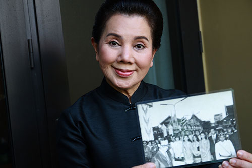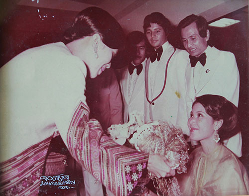 ภาพแรกนี้ เป็นภาพที่ได้เข้าเฝ้าฯรับเสด็จพระบาทสมเด็จพระเจ้าอยู่หัว รัชกาลที่ 9 ในงานกฐินที่วัดแคนางเลิ้งในภาพจะมีนักร้องนักแสดงในสมัยนั้นมารอเข้าเฝ้าฯรับเสด็จมากมายนะคะ คุณบุปผา สายชล, คุณโย-ทัศน์วรรณ, คุณครรชิต ขวัญประชา, ป้าทอง สุลาลีวัลย์สำหรับงานกฐินในวันนั้น ต้องขอประทานโทษด้วยถ้าบอกเล่ารายละเอียดของงานผิด เนื่องจากว่าเหตุการณ์นี้เกิดขึ้นนานมากแล้ว คือพี่ครรชิตเป็นศิษย์เอกของคุณมิตร ชัยบัญชา ซึ่งวัดแคนางเลิ้งจะเป็นเหมือนวัดที่คุณมิตร เคารพนับถือและอุปถัมภ์พอคุณมิตรเสียไปไม่กี่ปี คุณครรชิตก็ได้มีการทำบุญทอดกฐิน แล้วพระบาทสมเด็จพระเจ้าอยู่หัวท่านก็ทรงเสด็จฯมาในงานนี้ด้วย พวกเราก็ยืนตั้งแถวรอรับเสด็จ พอพระองค์ท่านเสด็จพระราชดำเนินมา ท่านก็หันหน้ามาทางดาราที่เข้าเฝ้าฯ อีกฝั่งจะเป็นประชาชนท่านเดินมาแต่ไกลเลย ท่านยิ้มให้กับพวกเราด้วยจนพระองค์ท่านหันไปทางประชาชนแล้วเราก็ยังยิ้มอยู่เลย เป็นความรู้สึกที่ (น้ำเสียงสั่นเครือน้ำตาคลอ) เหมือนเทวดายิ้มให้ เพราะท่านก็เหมือนเทวดาจริงๆ แม้ว่าท่านจะไม่ได้รับสั่งอะไร แต่แค่นี้เราก็ปลื้มใจ ยิ้มไปสามวันสามคืนแล้วค่ะ เพราะเป็นความรู้สึกที่เรารอคอยมานานแสนนาน แต่จริงๆ เราก็มีโอกาสได้เข้าเฝ้าฯบ่อยนะคะ หมายถึงว่าดาราสมัยก่อน จะมีงานการกุศล และพระองค์ท่านก็เสด็จฯด้วย อย่างเช่นงานรวมใจสู่แนวหน้า ซึ่งเป็นการหาเงินไปช่วยทหารที่ตระเวนชายแดน พี่เล็ก-นาท ภูวนัย เคยให้สัมภาษณ์เราก็ได้ไปรำฟ้อนเซิ้งสวิงในงานนั้นด้วย ซึ่งถ้าจำไม่ผิด ตอนนั้นจะได้รำคู่กับพี่เล็กด้วย แต่หารูปไม่เจอ การแสดงในวันนั้นรู้สึกว่าหายเหนื่อยค่ะ เพราะว่ากว่าจะขึ้นไปเล่นบนเวทีได้ ต้องไปซ้อมที่โรงละครแห่งชาติ กลับจากถ่ายหนังยังไงก็ต้องขอกองถ่ายกันไป นักแสดงทุกคนทำงานกันเดือนนึง 30 วัน 60 คิว คือกลางวันเรื่องนึง กลางคืนเรื่องนึง แต่ก็ต้องแบ่งเวลาตรงนี้เพื่อไปซ้อม เพราะเรารู้อยู่แล้วว่าพระองค์ท่านเสด็จฯ