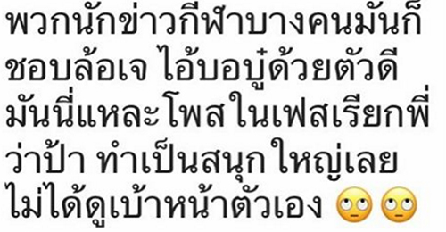 30 ธ.ค. 59 “เมสซี่เจ” ชนาธิป สรงกระสินธ์ จอมทัพทีมชาติไทย ออกอาการเดือดสุดๆ หลัง สมาคมนักข่าวช่างภาพกีฬาแห่งประเทศไทย ได้ทำการตั้งฉายาบุคคลในวงการกีฬาประจำปี 2559 ออกมา โดยตั้งฉายาให้กับ ชนาธิป ว่า “ลิงน้อยสอยป้า”