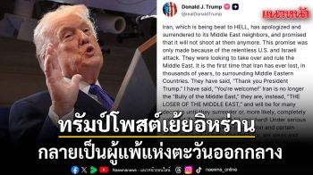 ทรัมป์ กัดไม่ปล่อยโพสต์เย้ย อิหร่าน เป็นผู้แพ้แห่งตะวันออกกลาง ขู่ถล่มซ้ำให้สิ้นซาก