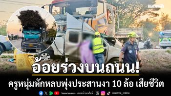 สลด! ครูหนุ่ม ขับรถหักหลบอ้อยร่วง พุ่งประสานงา 10 ล้อ เสียชีวิต