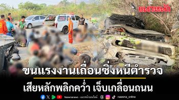 กระบะตีนผี ขนแรงงานเถื่อน ซิ่งหนีตำรวจ เสียหลักพลิกคว่ำ เจ็บเกลื่อนถนน