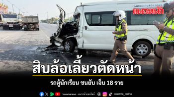 สิบล้อเลี้ยวตัดหน้า รถตู้นักเรียน ชนยับ เจ็บ 18 ราย